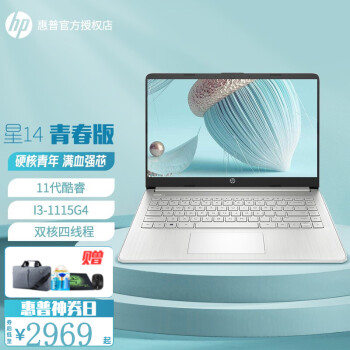 惠普(HP) 星14青春版 笔记本电脑 14英寸超轻薄商务网课办公学生游戏本 超核心显卡 星空银:I3-1115G4 高清屏 2022款 订制版:8G 256G SSD 纯固态