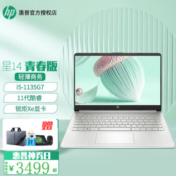 惠普(HP) 星14青春版 笔记本电脑 14英寸超轻薄商务办公学生网课游戏本 超核心显卡 星空银:i5-1135G7 高清屏 2022款 【标准版】8G内存 256G PCI SSD