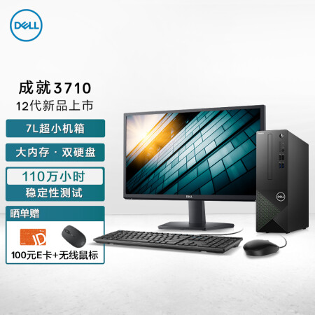 戴尔dell成就3710办公电脑 商用台式机小机箱电脑主机 i5-12400 16G 256G+1TB WiFi 三年上门 23.8英寸整机